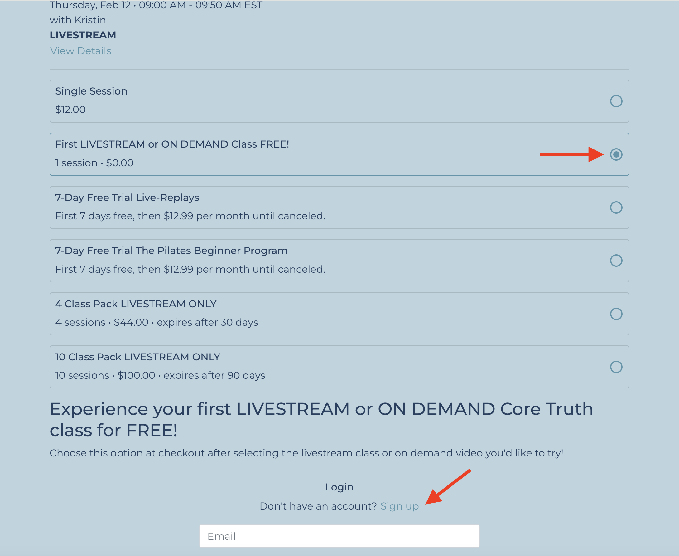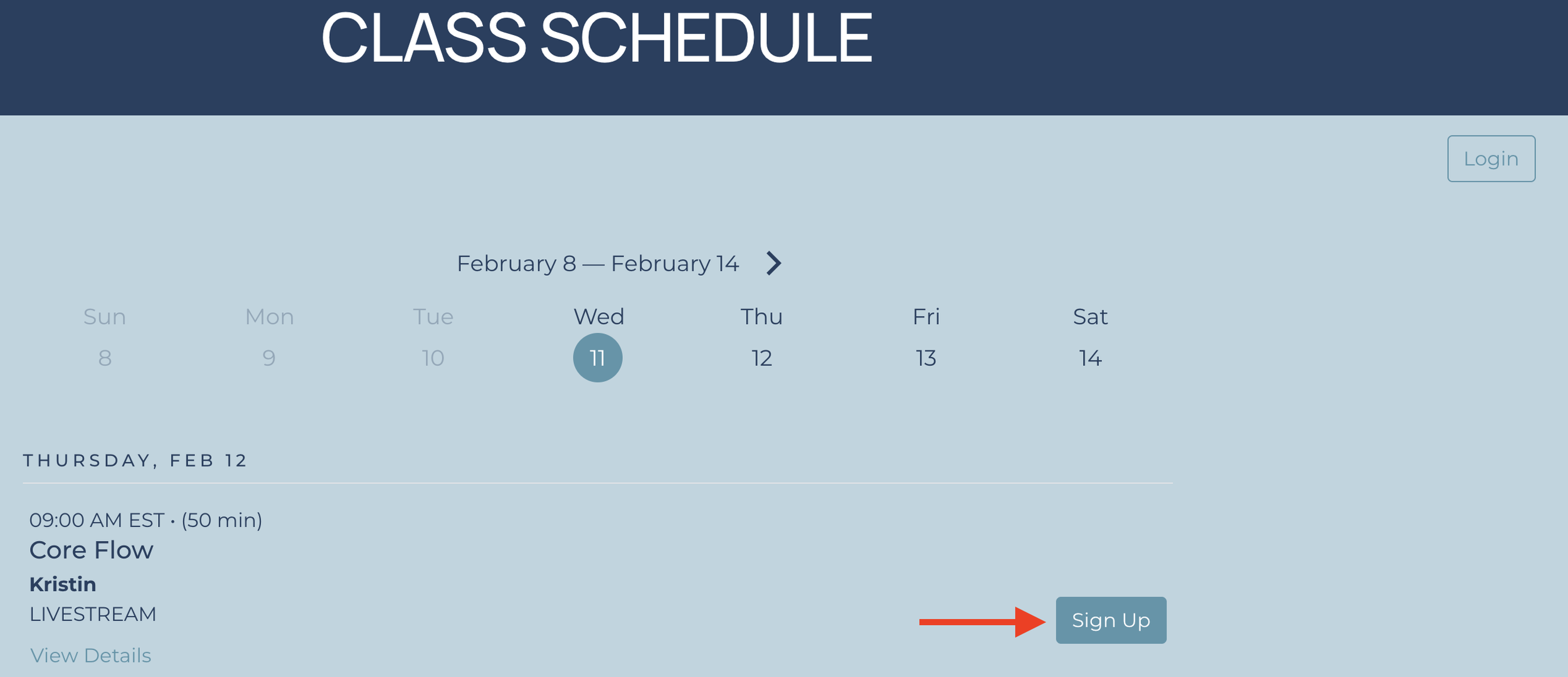 Click “Sign Up” for the class you would like to book