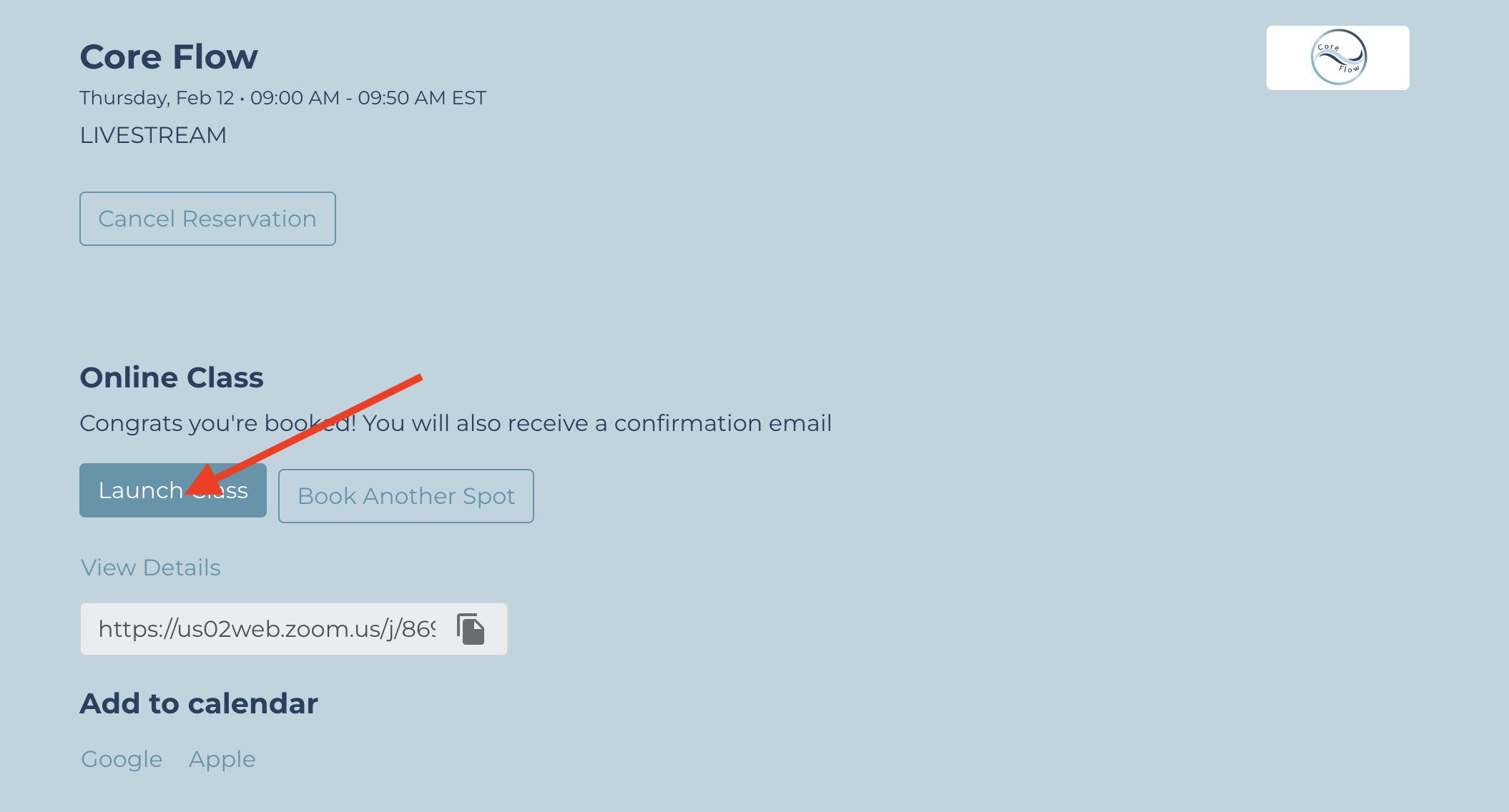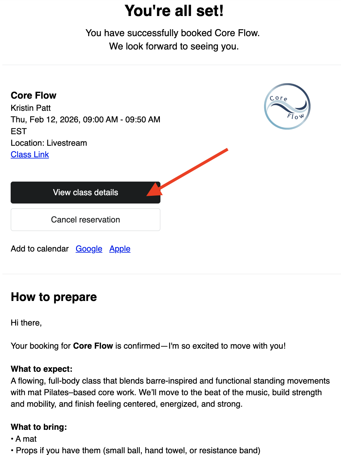 You can add this class to your calendar for a reminder of your booking